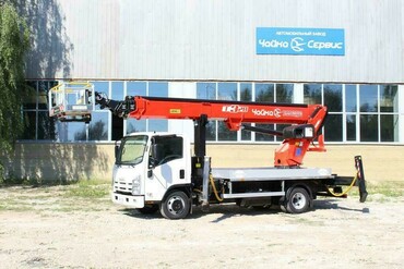 На шасси ISUZU ELF 7.5 возможна установка АГП с высотой подъёма от 12 до 28 метров.