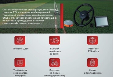 • Точность автовождения по сигналу спутниковой GNSS поправки составляет +/- 5-8 см